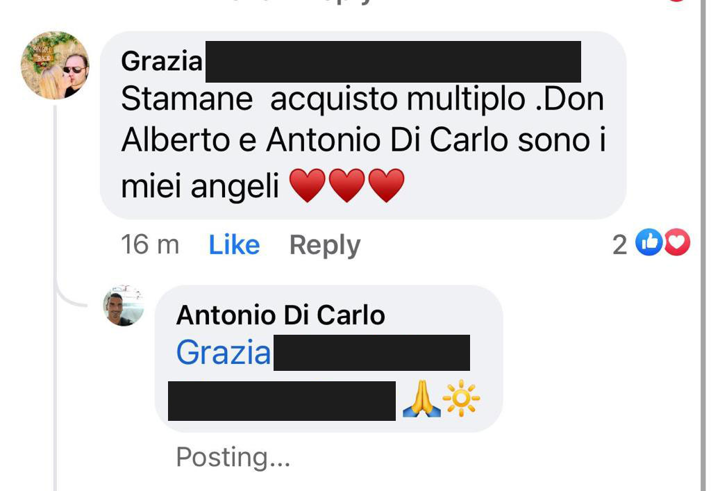 messaggio/commento tramite social media network quali Facebook, Instagram, etc.;